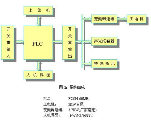 控制系統由PLC,變頻器,人機界面,I/O接口等部分組成。