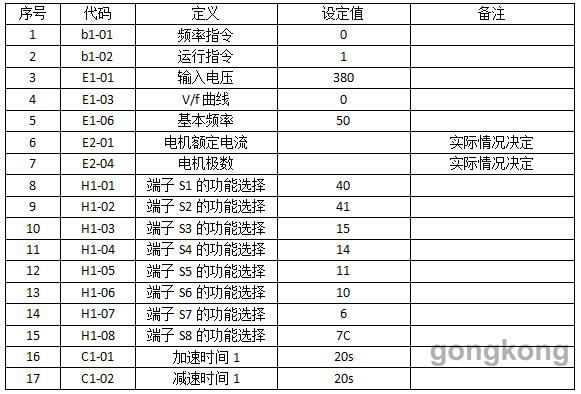 ①速度指令給定方式需采用增/減,也就是從低速1Hz啟動,升速時(shí)用“SB3”鍵操作,逐漸升速到所需要的頻率,最高到50Hz全速運(yùn)行;速度降低時(shí)采用“SB2”鍵操作,逐漸降速到所需要的頻率,最低為1Hz,即停止運(yùn)轉(zhuǎn)。
