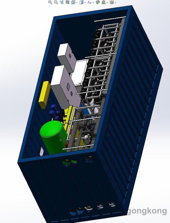 今天筆者給大家呈現(xiàn)的不是什么大的水處理工程,而僅僅是一套水處理設備。設備使用方為馬來西亞,戶外使用,采用的是集裝箱式的超濾系統(tǒng)。整個系統(tǒng)的外觀如下圖。