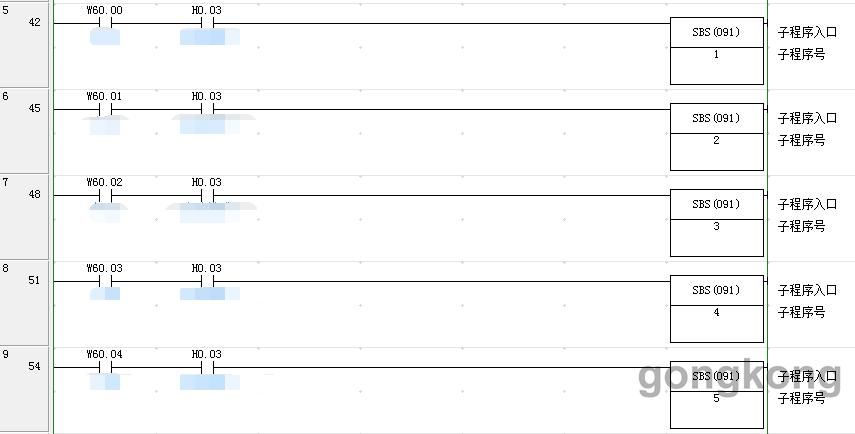 由于工藝原因決定了設備需要分16個流程進行,正好對于咱16進制的數(shù)據(jù),因此采用123…..CDF的步驟分別進行子程序的調(diào)用。正常工作流程為1-2-3-4-5-1,循環(huán)進行,當達到設定的要求后,啟動6-F的工作流程,對應的子程序被調(diào)用。程序框架如下。