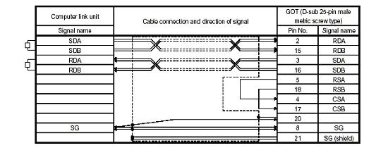 注意:GOT側(cè)的8號和20號引腳要短接連接