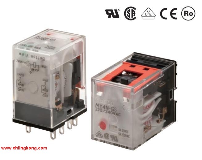 新增便于檢查回路的帶閉鎖擺桿型MY(S)。形狀:長方形原裝歐姆龍MY4N-GS AC24。