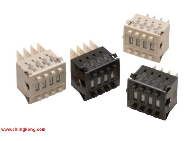 與A16按鈕開關相同的基礎設計歐姆龍撥碼開關。種類:長方形。