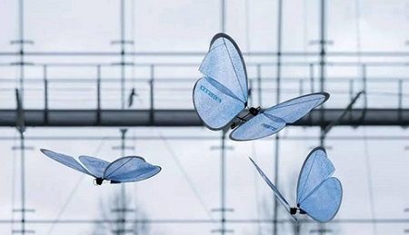 這只蝴蝶僅重32克,翅膀展開長50cm,而它身上僅帶有一個(gè)傳感器和舞動(dòng)翅膀的機(jī)械構(gòu)造,它的飛行路線完成靠場地上數(shù)個(gè)攝像頭的幫助。這設(shè)計(jì)可以最大限度地減輕處理器的負(fù)擔(dān)和盡量保持蝴蝶體型輕巧,最重要是可以控制成群機(jī)械蝴蝶飛舞。