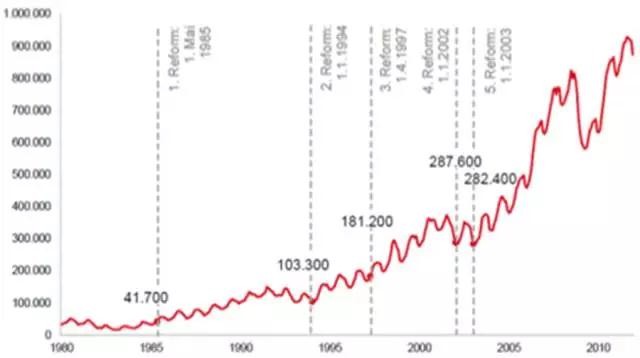 德國自2000年也出現(xiàn)了大量的“租借工”,即借由獨立人力公司雇傭而非與用工企業(yè)締結(jié)合同的“臨時工”,企業(yè)借此免去許多解雇和稅務(wù)方面的成本和法律問題,這種勞動者被任意支配的用工方式一度上升成為社會議題受到猛烈抨擊。然而其背后正是德國用工成本與產(chǎn)品利潤在“世界變平”過程中產(chǎn)生的客觀沖突,大企業(yè)可以通過人力資源外包轉(zhuǎn)嫁這種成本,而中小企業(yè)在這方面往往缺少選項,德國的高福利政策傳統(tǒng)在制造業(yè)成本人力成本飆升面前騎虎難下。