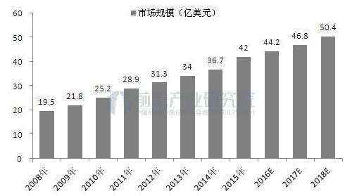 據(jù)前瞻產(chǎn)業(yè)研究院《中國機(jī)器視覺產(chǎn)業(yè)發(fā)展前景與投資分析報(bào)告》數(shù)據(jù),近年來,全球機(jī)器視覺行業(yè)發(fā)展迅猛,2015年,全球機(jī)器視覺系統(tǒng)及部件市場(chǎng)規(guī)模已達(dá)42億美元,預(yù)計(jì)2018年市場(chǎng)規(guī)模將超過50億美元。