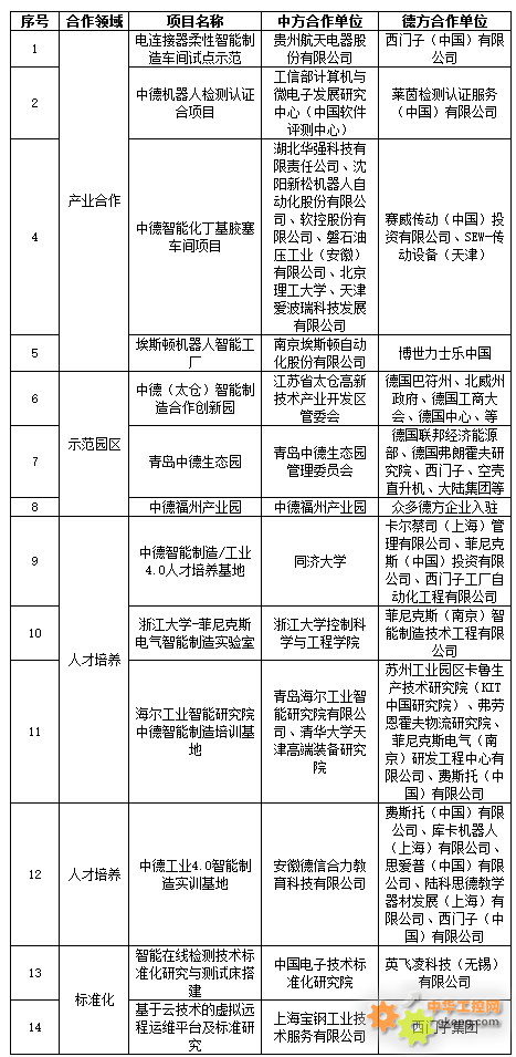 8月15日,工信部公示2017年中德智能制造合作試點示范項目名單。