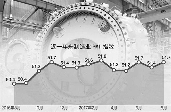 31日,國家統(tǒng)計局服務(wù)業(yè)調(diào)查中心與中國物流與采購聯(lián)合會發(fā)布的8月份中國制造業(yè)采購經(jīng)理指數(shù)(PMI)為51.7%,為年內(nèi)次高點(diǎn),比上月上升0.3個百分點(diǎn)。