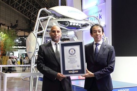 2016年10月4日~7日,在日本幕張舉辦的CEATEC JAPAN 2016展會上,舉行了歐姆龍FORPHEUS乒乓球機器人榮獲吉尼斯世界紀錄的頒發(fā)儀式,F(xiàn)ORPHEUS成為世界首個乒乓球教練機器人(First Robot Table Tennis Tutor)。歐姆龍株式會社執(zhí)行役員常務(wù)首席技術(shù)官(CTO)兼技術(shù)知財本部長宮田喜一郎先生接受了來自吉尼斯世界紀錄日本株式會社的頒獎。同時FORPHEUS也作為代表吉尼斯世界紀錄公司日本分部“Takumi Nippon”項目中的一項歐姆龍,創(chuàng)新構(gòu)想 將日本精湛的制造技術(shù)和心得向全世界進行發(fā)布。